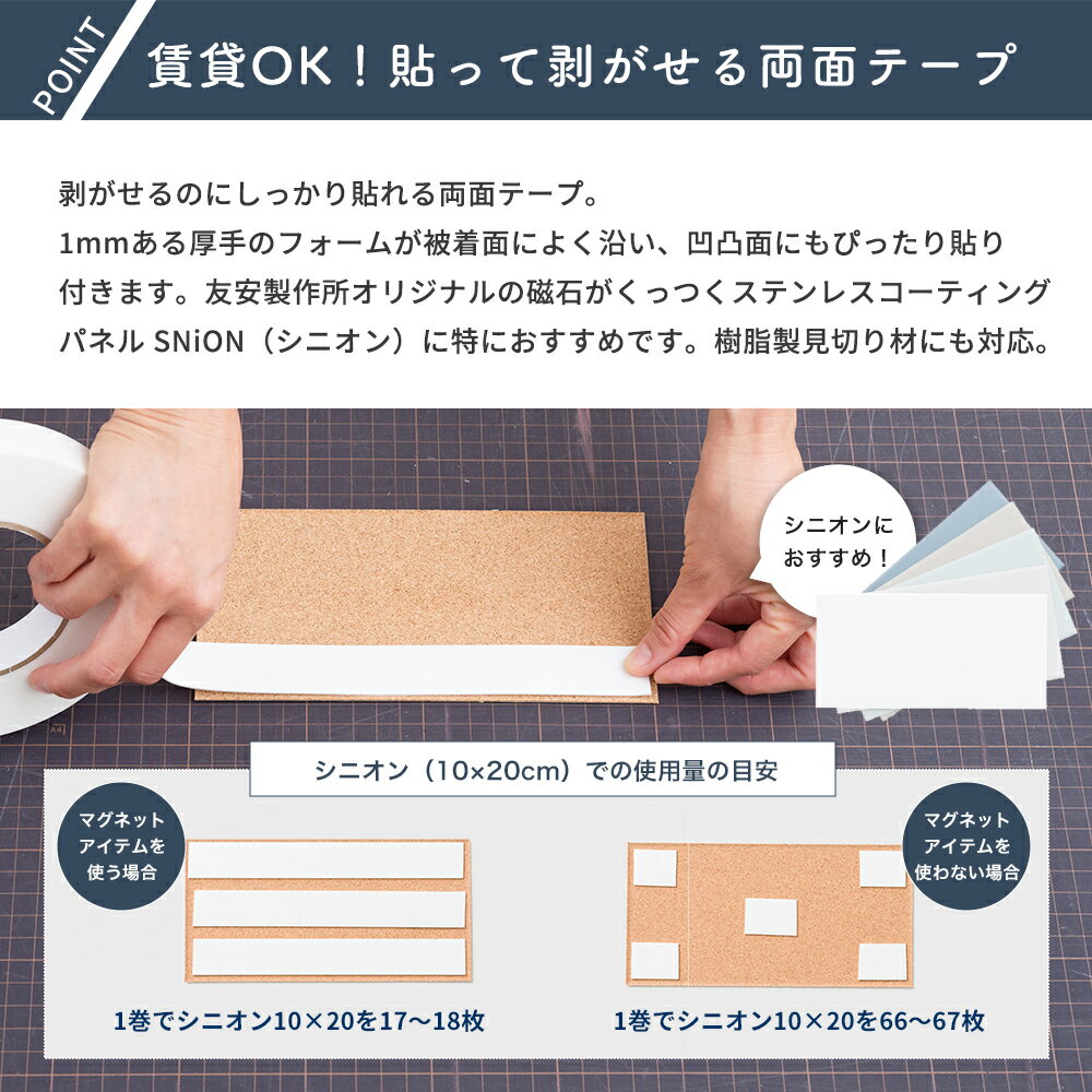 [11%Offクーポン1/1限定] 両面テープ 強力 接着剤 施工 テープ はがせる 内装 壁 DIY シニオンにおすすめ!剥がせる1mm厚 両面テープ 賃貸 原状回復 施工道具 ポリエチレンフォーム アクリル系粘着剤 メール便1個まで C-1-3