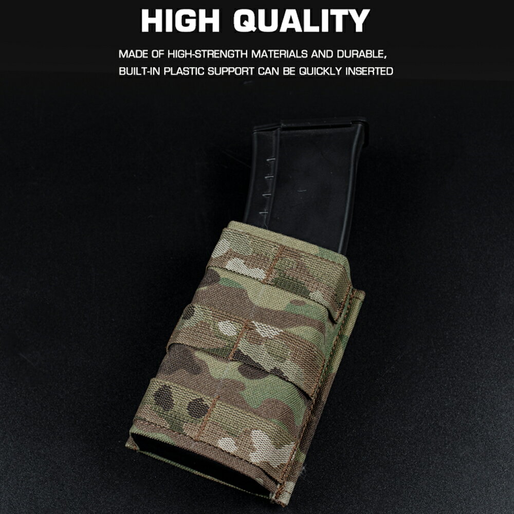 電動ガン、モデルガン、エアガン、カスタムガン、カスタム電動ガン販売中!モケイパドック【安全性の注意点】●製品説明書をよく読んで取扱下さい。●エアガン・電動ガン・ガスガンは周囲の状況を確かめながら人や車が通らない場所で遊びましょう。●エアガンの形をしているものを持ち運ぶ場合は、周囲に誤解や恐怖を与えないようケースやバッグをお使い下さい。●サバゲー会場以外では、小さい子供やマナーの知らない人に触らせないようにしましょう。●エアガンから放たれたBB弾は跳ね返りますので必ずエアガン・電動ガン・ガスガンで遊ぶ場合はゴーグルを着用しましょう。●人や動物にエアガン・電動ガンを向けたり発射してはいけません。●絶対にエアガン・電動ガンの銃口を覗いてはいけません。ESSTACタイプ AK マガジンポーチ シングル MC ESSTACタイプ AKマガジンポーチシングル。 米軍やシューターの間で評判のesstac カイデックスインサート式ポーチを再現している。 インサートのテンションでマガジンを保持するタイプで上蓋がないため素早いドローが可能。 背面はモールとなっていてモール対応の装備品の他、ベルトに通して固定することもできる。 AK系のマガジンが適合する。P-MAGタイプなど表面に凸凹のあるものはキツイことやものによっては入らいないためご注意ください。