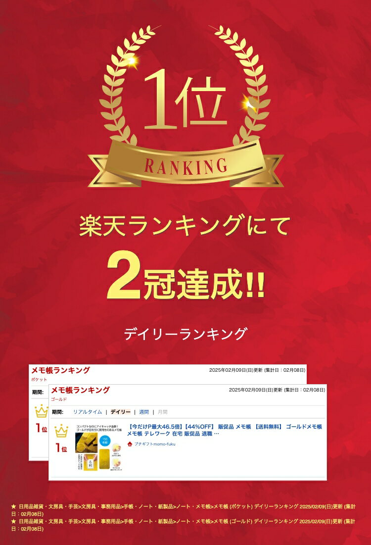 \楽天1位/【44%OFF】 販促品 メモ帳 【送料無料】 ゴールドメモ帳 メモ帳 テレワーク 在宅 販促品 退職 産休 ありがとう 販促品 激安 メモ帳 200円 人気 100円台 敬老会 プレゼント イベント セール sale