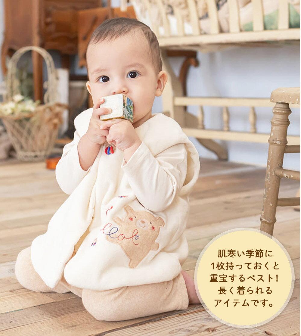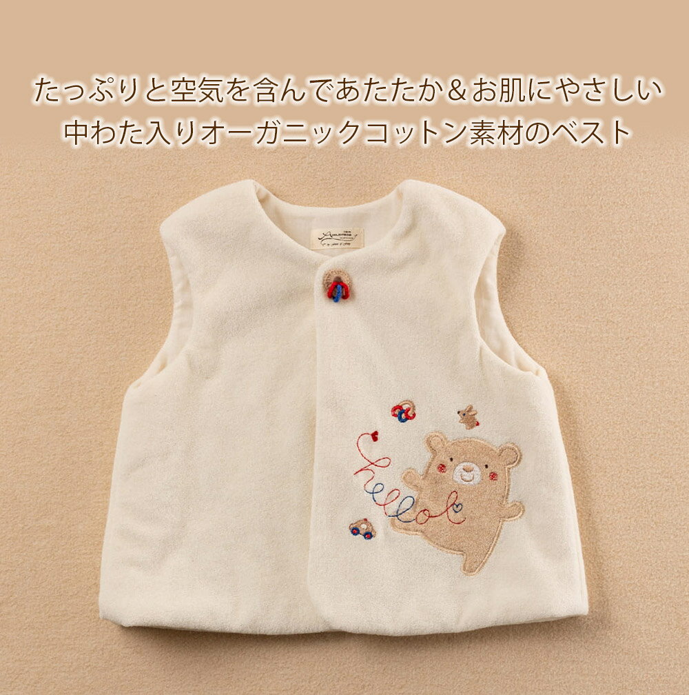日本製 オーガニックコットン ベビー ベスト くまのコットン ベビー服 冬 あったか 冬物 防寒 赤ちゃん用 ぬくぬくベスト 出産祝い 御祝 ギフト 孫 プレゼント 0歳 1歳 サイズ 70 80 アモローサマンマ Amorosamamma 年中OK 春 秋 冬用 送料無料