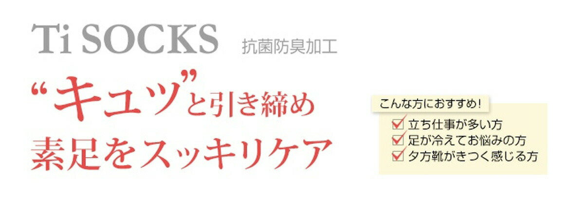 キュッと引き締めスッキリケア ふくらはぎから足首にかけて、段階的に着圧が強くなる段階着圧設計を採用。 デスクワークや長時間の立ち仕事などの足をサポートします。 抗菌防臭加工でエチケット対策も万全、女性はもちろん男性にもおすすめの1足です。 ■サイズ:M(22〜24cm)、L(24〜26cm)、LL(25〜27cm) ※男性にはLLサイズがおすすめ! ■カラー:ブラック ■素材:ナイロン90% ポリウレタン10% ■洗濯方法:手洗い ■技術:アクアチタン スポーツ サポーター 日常生活 男性用 女性用 バスケ テニス 筋トレ 野球 ランニング 登山 ゴルフ メンズ レディース 家事 育児 作業 仕事 サッカーキュッと引き締めスッキリケア ふくらはぎから足首にかけて、段階的に着圧が強くなる段階着圧設計を採用。 デスクワークや長時間の立ち仕事などの足をサポートします。 抗菌防臭加工でエチケット対策も万全、女性はもちろん男性にもおすすめの1足です。 ■サイズ:M(22〜24cm)、L(24〜26cm)、LL(25〜27cm) ※男性にはLLサイズがおすすめ! ■カラー:ブラック ■素材:ナイロン90% ポリウレタン10% ■洗濯方法:手洗い ■技術:アクアチタン スポーツ サポーター 日常生活 男性用 女性用 バスケ テニス 筋トレ 野球 ランニング 登山 ゴルフ メンズ レディース 家事 育児 作業 仕事 サッカー