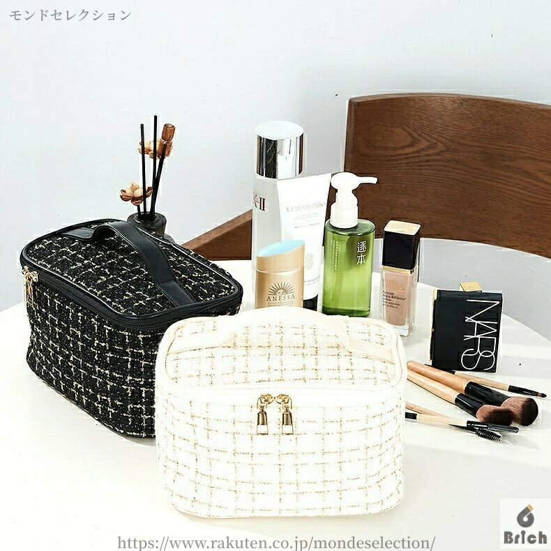 【送料無料】化粧ポーチ バニティバッグ メイクポーチ コスメポーチ レディース 女性 鞄 カバン ハンドバッグ 大容量 メッシュネット 持ち手 取っ手 手持ち 収納 小物入れ チェック柄