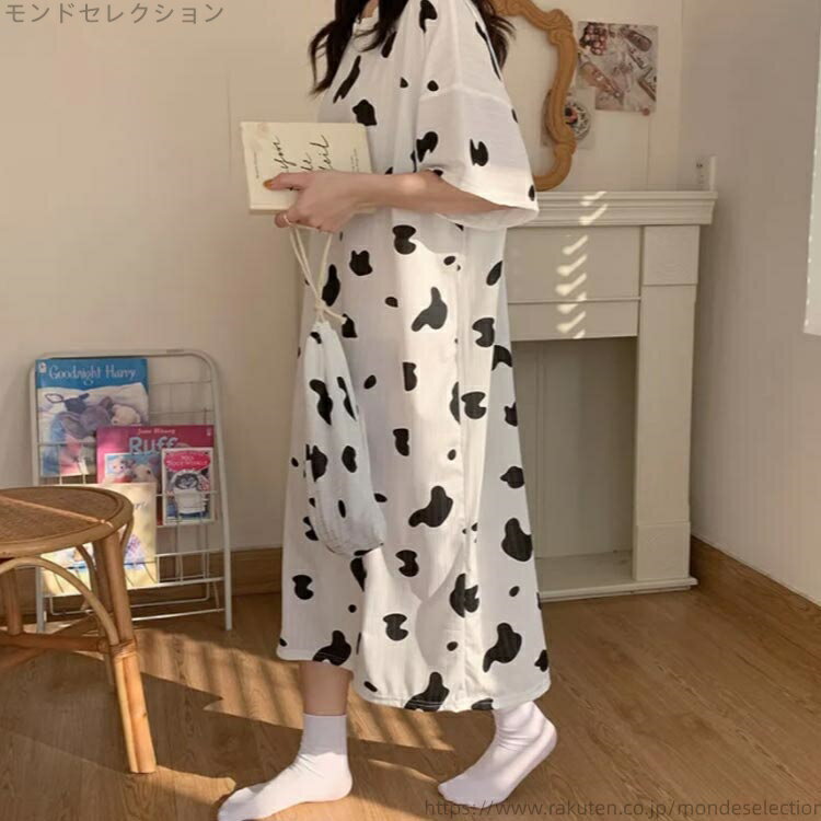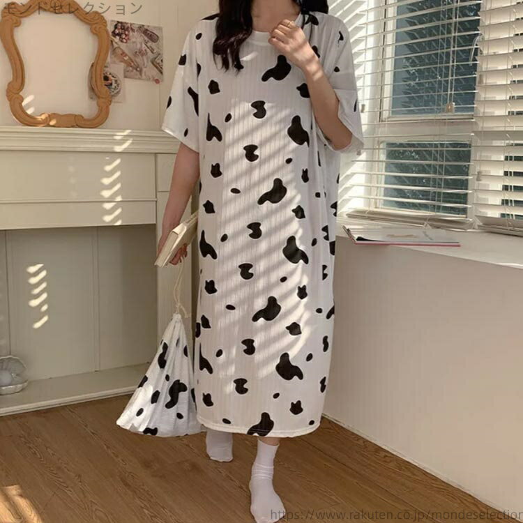 【送料無料】大きいサイズ 可愛い レディース マキシ丈 涼しい 牛柄 半袖 ひんやり かわいい 体型カバー ワンピース 接触冷感 夏用