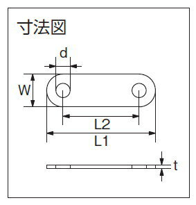 ★特徴★ ●Uボルト、UボルトA型のピッチに合わせたプレートです。 ●Uボルトとの組み立てに。 ★仕様★ ●ステンレス(SUS304) ●仕上げ:バレル研磨仕上げ ●W(mm):12 ●d (mm):5.4 ●L1(mm):47 ●L2(mm):35 ●t(mm):1 ●質量(g):8