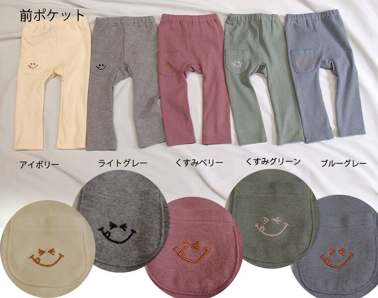 【全品対象選べる福袋開催中!】スパンフライス 前ポケットニコちゃん刺繍 8分丈モンキーパンツ ベビー服 長ズボン (80cm 90cm 95cm)2998 メール便可13