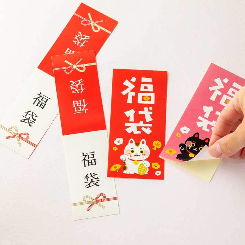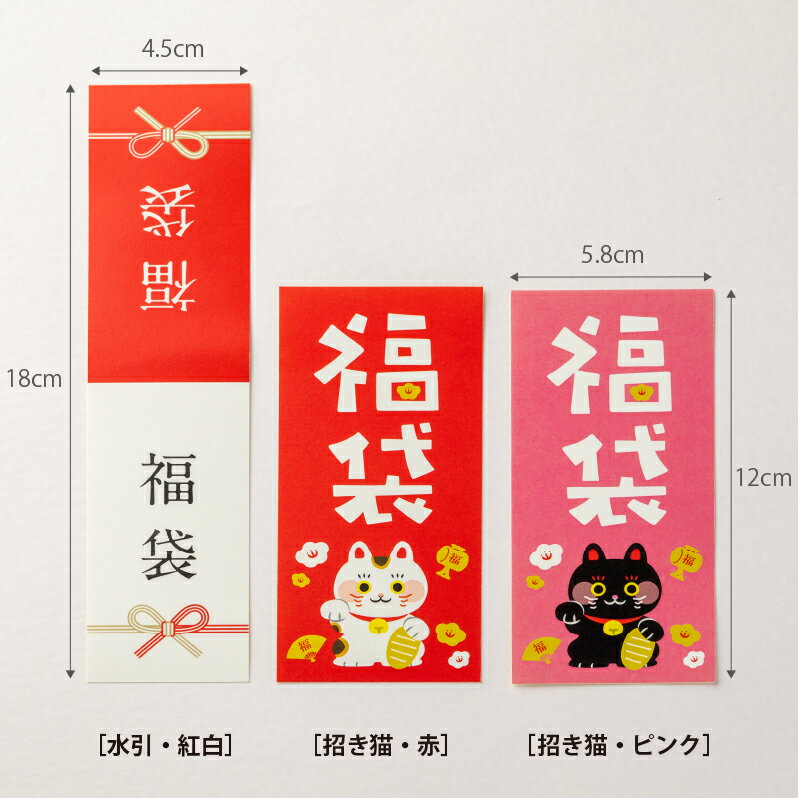 【メール便OK】[ 福袋シール]水引・赤/招き猫・赤/招き猫・ピンク (10枚入)(100枚入)福袋 シール 新年 ご挨拶 限定 デザイン ラッピング ラベル シール 福袋 おめでとう 明けましておめでとう 謹賀新年 お正月ラッピング 可愛い