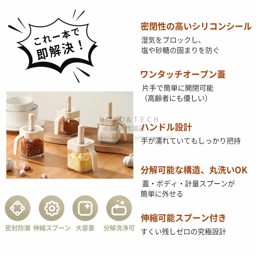 調味料入れ スプーン付き 調味料ポット グラス 調味料ポット スパイスボトル 2個セット 塩入れ 砂糖入れ 使いやすい おしゃれ 収納 保存 湿気防止 調味料容器 調節可能スプーン付き スパイス入れ 保存容器 キッチン用品 3個セット 4個セット送料無料