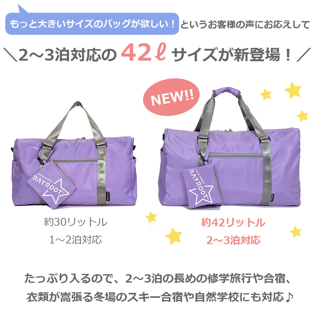 2~3泊対応の大容量 42Lサイズが新登場! ボストンバッグ 修学旅行 小学生 子供 キッズ 女の子 男の子 修学旅行バッグ 旅行バッグ 旅行かばん トラベルバッグ 撥水 軽量 ショルダーベルト 付き 42L 大容量 2泊 3泊 合宿 林間学校 自然教室 スキー合宿 BayRoot ベイルート ボストンバック ボストン 旅行バック 修学旅行バッグ 旅行カバン 旅行鞄 トラベルバック 小学生 子供 キッズ 5年生 6年生 こども 2泊 3泊 40L 42L 大容量 スキー合宿 自然教室 宿泊研修 部活 合宿 研修旅行 旅行 ななめがけ ショルダー付き 斜め掛け 肩紐付き スポーツバッグ スポーツバック 軽い 水をはじく 2泊3日 女性用 おんなのこ 女子 男の子 男子 おとこのこ 中学生 高校生 黒 ネイビー 紫 パープル パステル 水色 かわいい おしゃれ ベイルート bayroot 関連商品はこちら