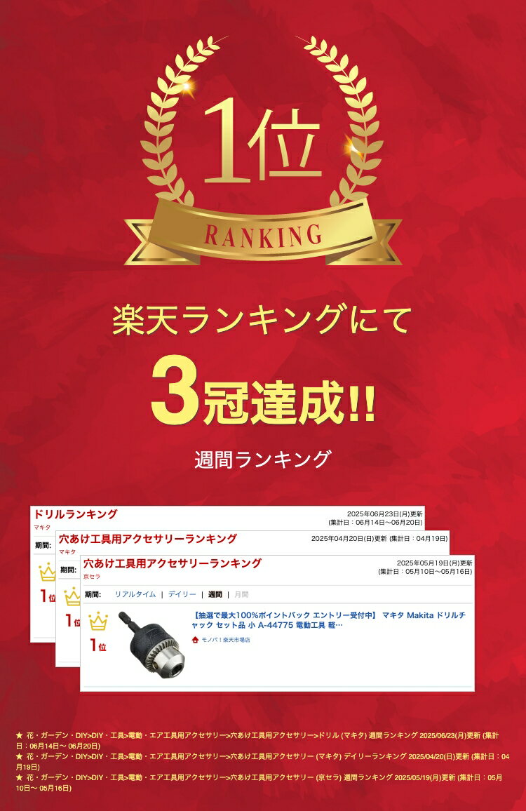 【ポイント3倍 12/3~12/11】 マキタ Makita ドリルチャック セット品 小 A-44775 電動工具 軽作業用 純正 DIY