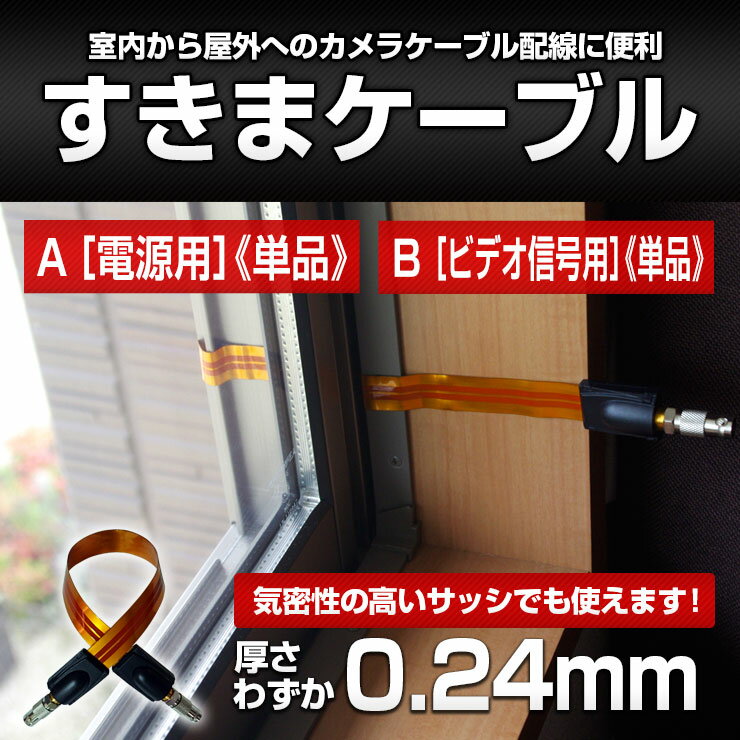 【ACE 防犯カメラ用】すきまケーブル《A電源用単品》《Bビデオ信号用単品》 厚さ【0.24mm】 フラットケーブル 穴あけ工事不要 隙間ケーブル サッシケーブル 窓 戸 薄い電線 電源用 カメラ用 防犯カメラ IPカメラ 配線