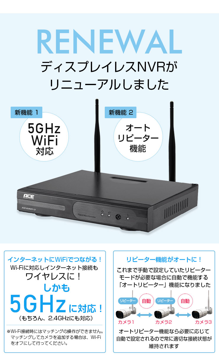 【 録画機 単品(交換用)】防犯カメラ用 録画機 レコーダー ディスプレイレスNVR モニター無し 録画機 NVR 単品 [WBW/JWL/APR2065/APR3065シリーズ専用] [ACE-GUNVR-10] ACE SECURITY SYSTEM