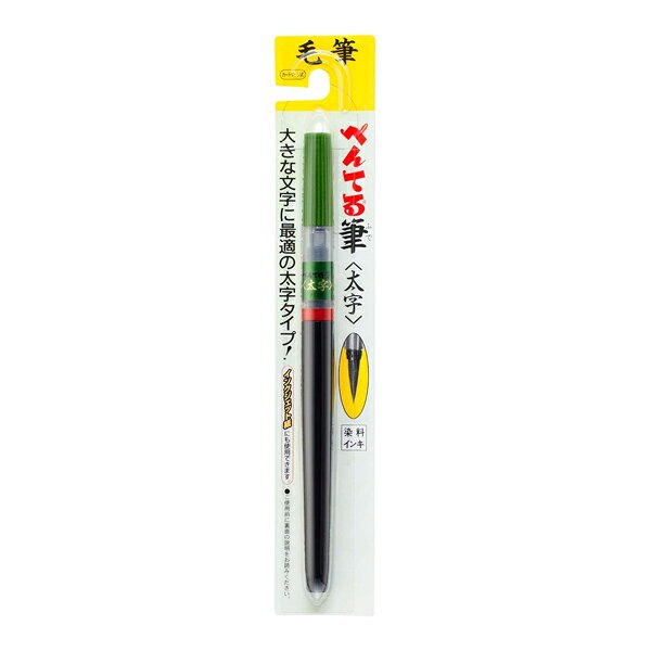 【穂先種類】太字 【穂先寸法】太さ5.2~5.6mm / 長さ17.0~19.0mm 【インク種類】水性染料(黒インク) 【材質(前軸・キャップ)】再生PP 【材質(後軸)】再生PE 【材質(穂先)】ナイロン繊維 【本体寸法】最大軸径φ13.0×全長175.0mm 【本体重量】15g 【個装寸法】40.0×15.0×230.0mm(ブリスターパック) 【個装重量】21.0g(ブリスターパック) 【カートリッジ品番】XFR-AD 【環境対応】グリーン購入法適合商品、エコ商品ねっと掲載 【特長】 ●太くて大きい文字もカスレずきれいに書ける、なめらかな書き心地を実現した毛筆タイプの筆ペンです。 ●毛筆の最上級品であるイタチ毛などの天然毛を一切使わず、毛筆の書き心地を忠実に再現しました。 さらに弾力性や耐久性に優れ、本物の筆を越えた品質を実現しています。 ●インクジェットプリンターと同様の染料インキを採用することで、インクジェット紙の上でも、 滑らかな文字が表現できます。 ●インクはカートリッジ交換式なので、環境にやさしく経済的です。 ご注文・配送に関しての注意事項 ■こちらの商品はまとめ買い商品です。 ご注文の際は数量の選択お願いします。 ■当店在庫から、もしくはメーカーから取り寄せ後の出荷となります。 ■軒先渡しの商品のため到着後、お客様で開梱していただく必要があります。 ■運送会社の指定及び時間指定等は行えませんので予めご了承願います。 ■取り寄せ商品のため、お客様都合でのキャンセル・返品・交換は致しかねます。 ご注文時に商品仕様等をご確認のうえ、お間違いの無いよう注文お願い致します。 ■納期はメーカー在庫がある場合の目安です。在庫切れの場合は別途ご連絡いたします。 ■在庫切れや納期が予定より延びた場合によるキャンセルは承っております。