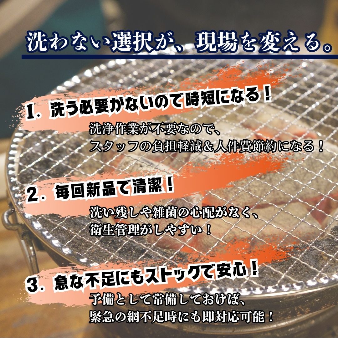 当店は「SUMI」公式直営店です。 全国の飲食店・焼肉店・屋台・露店で採用されている、高品質な使い捨て焼き網。 業務用としてはもちろん、BBQやキャンプなどのアウトドアにも最適です。 タイプ 丸平型(フラットタイプ) サイズ 直径 約28cm(280mm) 数量 200枚入り(200枚入×1箱) 素材 スチール(めっき加工) 用途 焼肉、BBQ、炉端焼き、コンロ調理、炭火焼き、業務用、イベント用 ▼商品の特徴 ・使い捨てタイプなので洗いの手間がなく、衛生的に使用可能 ・炭火・ガスどちらにも対応 ・全国一律送料無料(※沖縄・離島を除く) ▼おすすめポイント ・飲食店、屋台、イベントなど大量消費に最適 ・使い切りで衛生的、準備と片付けの手間を大幅に削減 ・業務用価格で高コスパ ・焼肉、炭火焼き、炉端焼き、BBQ、キャンプ、七輪、火鉢など幅広く活躍 ▼こんな方におすすめ ・焼肉店・居酒屋などの業務用でコストを抑えたい方 ・屋台やイベント出店で大量に使用したい方 ・キャンプやバーベキューなど屋外調理を楽しみたい方