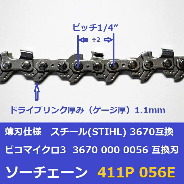 チェーンソー 替刃 ピッチ 1/4 ゲージ 1.1mm 56コマ スチール 3670 STIHL 36700000056 互換 チェンソー 刃 411P056E ソーチェーン