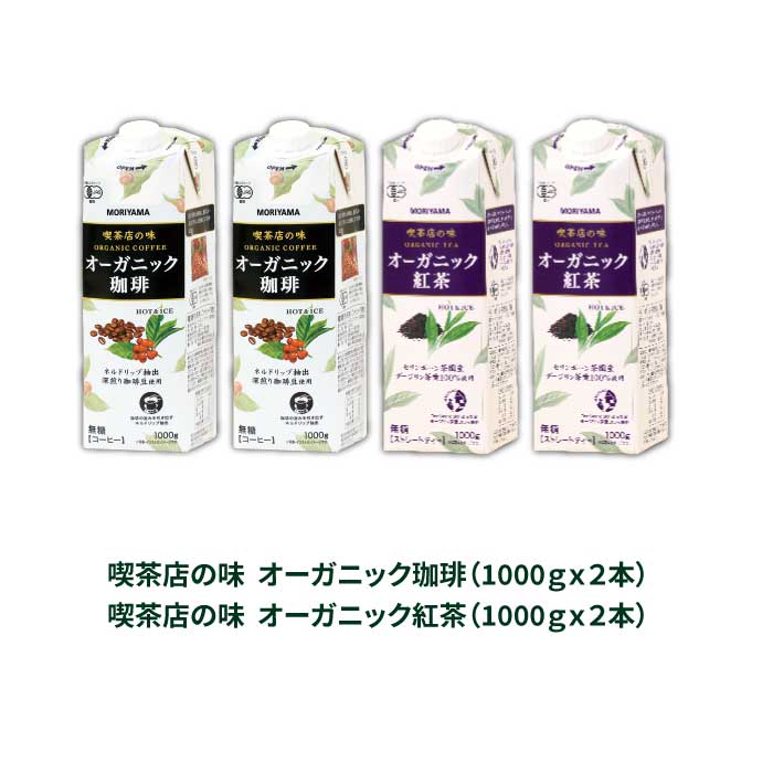 MORIYAMA 冬 ギフト N36 オーガニック ドリンク セット 喫茶店の味 珈琲 & 紅茶 4本 アソート 有機JAS 無糖 紙パック 熨斗無料 包装無料 御歳暮 寒中見舞い 御年賀
