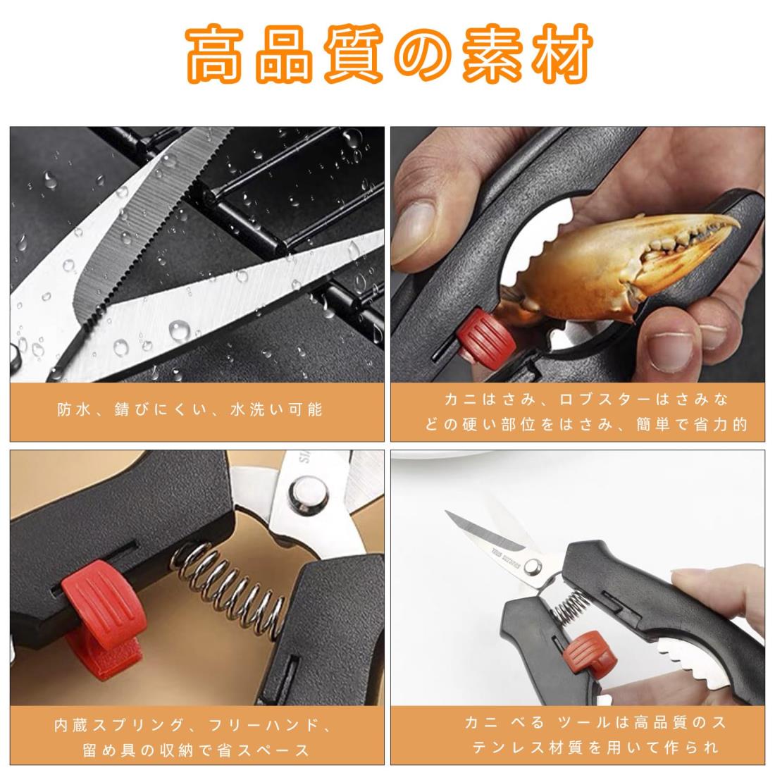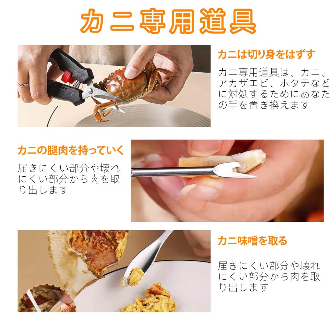 【カニ専用道具】カニ専用道具は、カニ、アカザエビ、ホタテなどに対処するためにあなたの手を置き換えます。届きにくい部分や壊れにくい部分から肉を取り出します。シーフードツールを使用すると、エレガントでシンプルにシーフードを楽しむことができます。【高品質の素材】カニ べる ツールは高品質のステンレス材質を用いて作られ、丈夫で耐久性があり、耐食性に優れています、防水、錆びにくい、水洗い可能。 安全で使いやすく、壊れたり、変形しにくい、再利用可能で、期間使用できます。【使いやすい】 ハサミは切れ味がよく、カニ肉を簡単に切り分けることができ、カニ肉を取り出すのが簡単になります。小さなフォークの先端は精密に設計されており、カニ肉を正確につまむことができます。小さな針の針先は非常に鋭利で、カニ肉から小さな部分を簡単に取り出すことができます。【幅広い用途】家庭用のカニだけでなく、レストランでカニを楽しむのにも適しています。ピクニックや家庭用や料亭や蟹料理専門 店に最適です。これらのプロ仕様のシーフードツールは、シーフードの味が好きな人への素晴らしい贈り物になります。説明 【カニ専用道具】カニ専用道具は、カニ、アカザエビ、ホタテなどに対処するためにあなたの手を置き換えます。届きにくい部分や壊れにくい部分から肉を取り出します。シーフードツールを使用すると、エレガントでシンプルにシーフードを楽しむことができます。 【高品質の素材】カニ べる ツールは高品質のステンレス材質を用いて作られ、丈夫で耐久性があり、耐食性に優れています、防水、錆びにくい、水洗い可能。 安全で使いやすく、壊れたり、変形しにくい、再利用可能で、期間使用できます。 【使いやすい】 ハサミは切れ味がよく、カニ肉を簡単に切り分けることができ、カニ肉を取り出すのが簡単になります。小さなフォークの先端は精密に設計されており、カニ肉を正確につまむことができます。小さな針の針先は非常に鋭利で、カニ肉から小さな部分を簡単に取り出すことができます。 【幅広い用途】家庭用のカニだけでなく、レストランでカニを楽しむのにも適しています。ピクニックや家庭用や料亭や蟹料理専門 店に最適です。これらのプロ仕様のシーフードツールは、シーフードの味が好きな人への素晴らしい贈り物になります。
