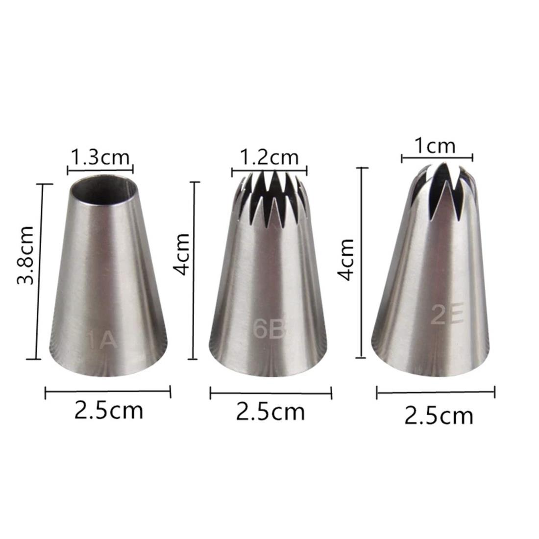 ステンレス製 絞り口金 丸型 花型 口金 ケーキデコレーション 飾り お菓子作り 製菓用品 3個セット (3個セット 丸型 花型)