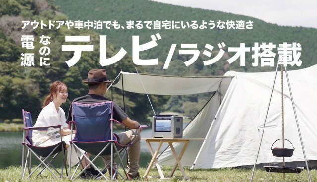 【製品情報】 1. TVやラジオ搭載で、キャンプや車中泊の時にも、まるで自宅にいるような快適さ 2. ”電気を持ち運ぶ時代”アウトドアや災害時などもしもの時家族を心配させないバッテリー 3. 災害の多い国、日本!電気の復旧まで万が一の備えに。災害による避難所でもTVなどの情報取得が可能 アウトドアや災害時に情報源であるテレビを持ち出すのは至難の技でした。 しかし、近年の多くの方々が気軽にアウトドアを楽しむことが増え、また、いつどこで起こるかわからない災害に備えて、備蓄や準備をしている現代社会。 アウトドアの楽しみにプラスアルファ、気軽に『電気』と『テレビ』を持ち運ぶことができ、災害時にも『電気』と『情報源』であるテレビとラジオが、皆様の不安を和らげてくれます。 レジャーや防災等に適した『TVとラジオを搭載した3 in 1 ポータブル電源』「Wizz Power Station TV PSTV-600」を開発致しました。 【付属品】 ・本体 ・ACアダプタ ・シガーソケットアダプタ ・リモコン ・地上デジタル用ロッドアンテナ ・mini B-CASカード ・単四電池2本(試供品) ・取扱説明書/保証書 【注意事項】 商品詳細は「ダイニチ電子株式会社」をご確認下さい。 ●沖縄・離島は送料別でございます。 ご注文後に送料を上乗せさせていただきます。 ●こちらの商品はメーカーからの取り寄せとなります。 ●メーカーに在庫が有る場合は、2~4営業日で出荷となります。 ●メーカーに在庫が無い場合は別途、納期をご連絡いたします。 ●注文キャンセルは承れませんので、ご注文前に適合・納期等の確認をお願いいたします。 ●不良品以外の返品・交換はお受けできません。
