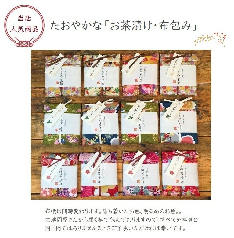 退職 お礼 お茶漬け プチギフト サンクスギフト 出産内祝い イベント おしゃれ 大量 引っ越し お世話になりました 挨拶 周年記念 店舗 自治会 出産内祝い 内祝 結婚内祝 産休 送別会 御礼 美味しい 和風 たおやかな「お茶漬け布包み」1個 3種のお味よりアソートです