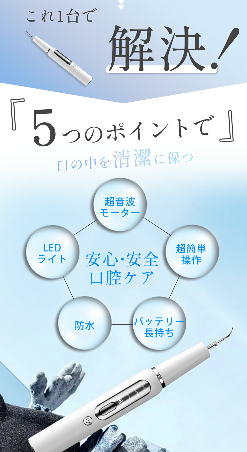 【クーポン配布中】電動歯石取り 家庭用歯石取りセット 口腔洗浄器 超音波 スケーラー 歯石 除去 超音波 歯周病 予防 歯 歯茎 歯周 口臭 歯間ブラシ 自宅 口腔洗浄 デンタルケア USB充電 防水 耐水