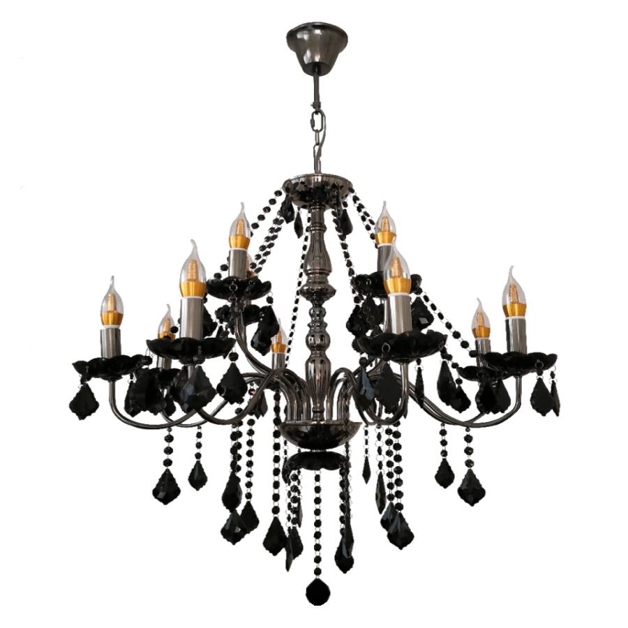 LED電球対応 シャンデリア インテリア おしゃれ ライト クリスタル ゴージャス天井のシーリング対応 ラグジュアリー 北欧 洋風シャンデリア スワロフスキー照明 天井照明 照明器具 LED調光器対応 送料無料 姫系シャンデリア 大型 2段 12灯 ブラック