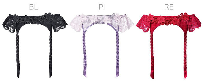 ・アップリケにはラメ糸を使用 ・アップリケはヴィオーラの花をイメージ 美しいデザインディテールが光る、気品あふれるガーターベルト。ひらりと広がるウエストのレースがエレガントな印象に。フロントにあしらわれた繊細なアップリケはバラの花をイメージしました。ゆるやかな曲線を描くカッティングと華やかなレース、花々の調和が優雅なアイテム。シンプルなカラーリングが上品なデザインを引き立て、ホリデーシーズンをスペシャルに彩ります。 コーディネイトアイテム:btj427、btj727、gtj627、ctj227、ptj227、ptj427、ptj727
