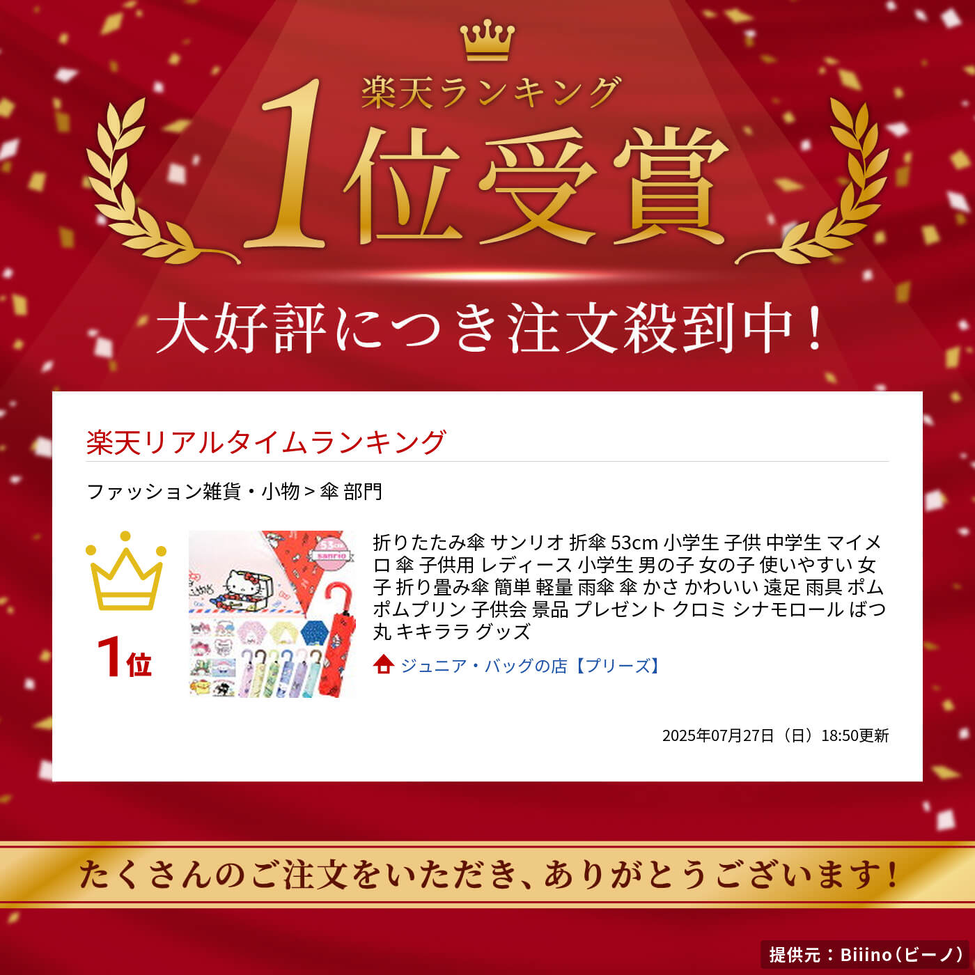 折りたたみ傘 サンリオ 折傘 53cm 小学生 子供 中学生 マイメロ 傘 子供用 レディース 小学生 男の子 女の子 使いやすい 女子 折り畳み傘 簡単 軽量 雨傘 傘 かさ かわいい 遠足 雨具 ポムポムプリン 子供会 景品 プレゼント クロミ シナモロール ばつ丸 キキララ グッズ