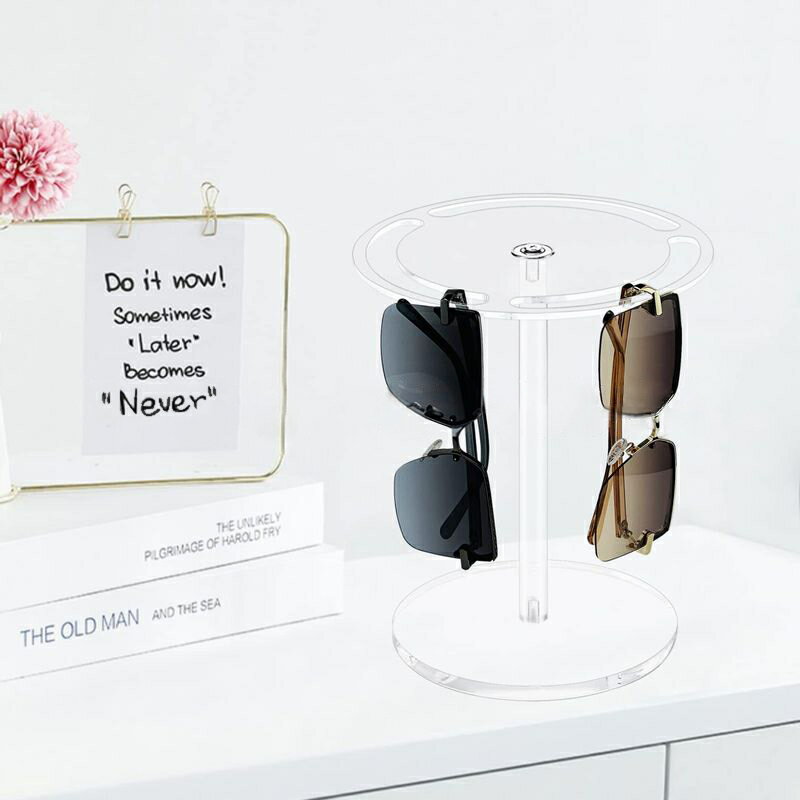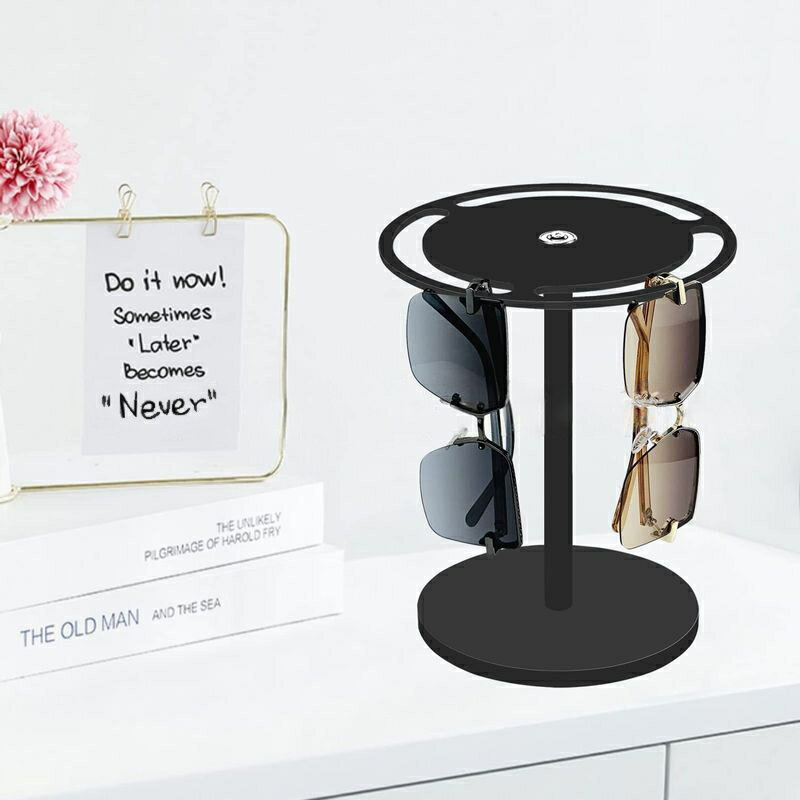 送料無料 眼鏡スタンド メガネスタンド サングラススタンド 眼鏡小物 円形 360度回転 インテリア シンプル おしゃれ かわいい 可愛い 透明 黒