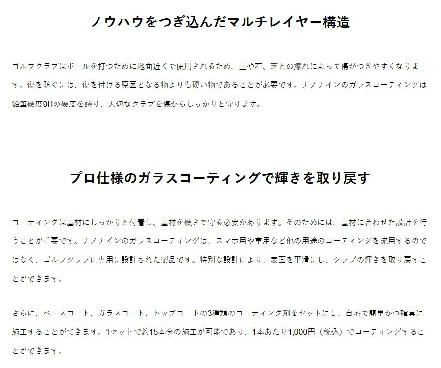 nanonine9.com ナノナイン ガラスコーティング コンプリートセット ゴルフ専用 ゴルフ クラブコーティング コーティング剤 ゴルフ用 ゴルフクラブ用