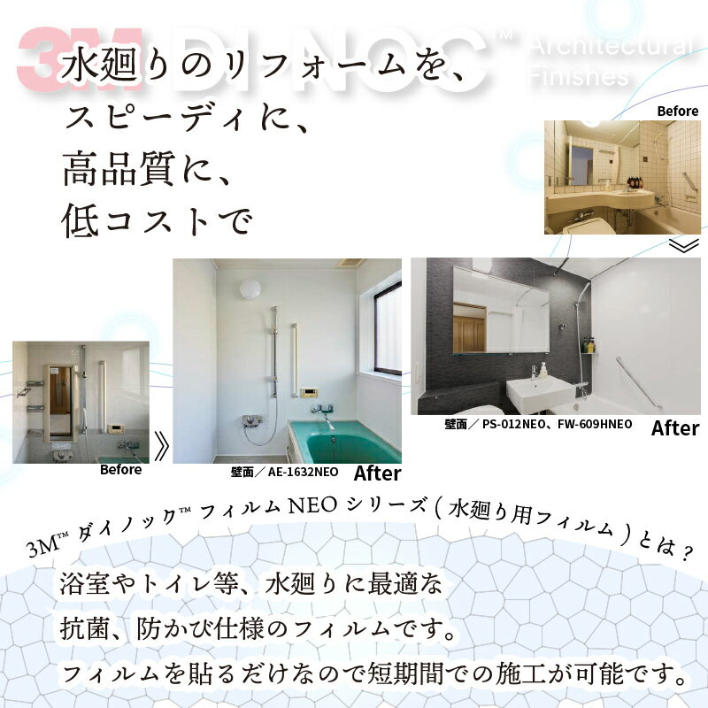 3M 浴室用シート【幅 122cm】フラットな壁用【3M DI-NOC NEO】 ダイノック ネオ 水廻り 浴室 壁 壁用 風呂 ユニットバス トイレ タイル シート 防水 傷 修復 マンション 戸建 リノベーション リフォーム お店 ホテル 病院 DIY