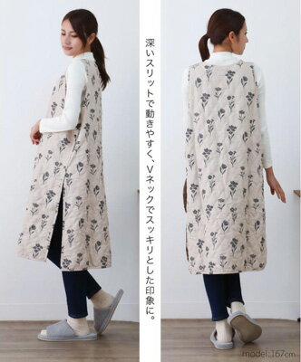 【あったかエプロン】 ローマン 裏ボアキルトタブリエエプロン /ベージュ 撥水加工