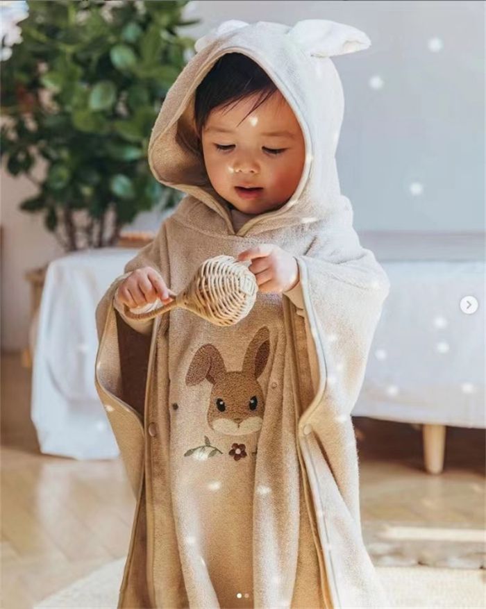 キッズ スナップ付き バスタオル バスポンチョ フード付き 100%綿 タオルポンチョ バス タオル ポンチョ 熊柄 兎柄 吸水速乾 ポンチョタオル ins 人気 韓国風 春 夏 秋 冬 四季適用 出産お祝い 男の子 女の子 マント おくるみ 風呂上り プレゼント ギフト