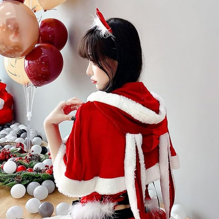 クリスマス サンタ マント ポンチョ 大人 バニーガール ケープ うさぎ耳 サンタクロース コスプレ ケープ Christmas XMAS