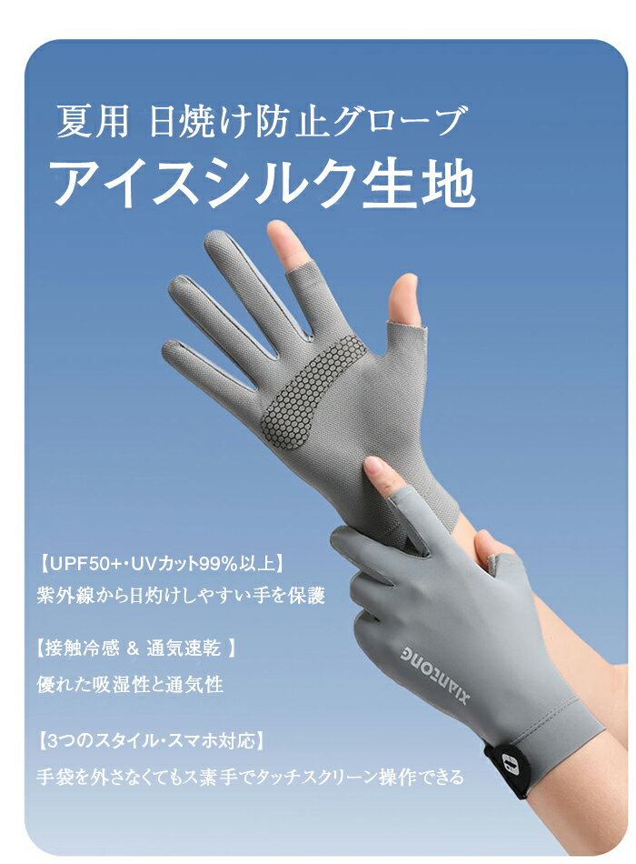 手袋 メンズ 夏用 最新 薄型 冷感 紫外線対策 グローブ 涼しい UV手袋【UVカット・ 接触冷感・スマホ対応】日焼け止め UPF50+ 手荒れ対策 軽量 滑り止め 通気速乾 釣り 通勤 自転車 運転 3つのスタイル