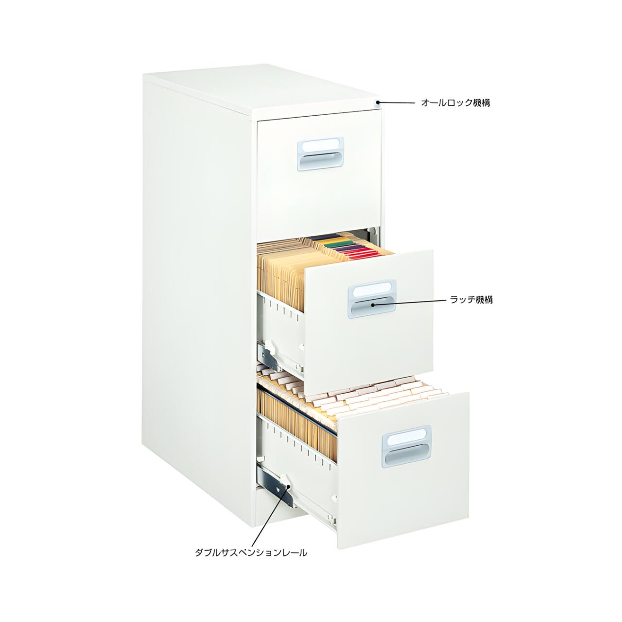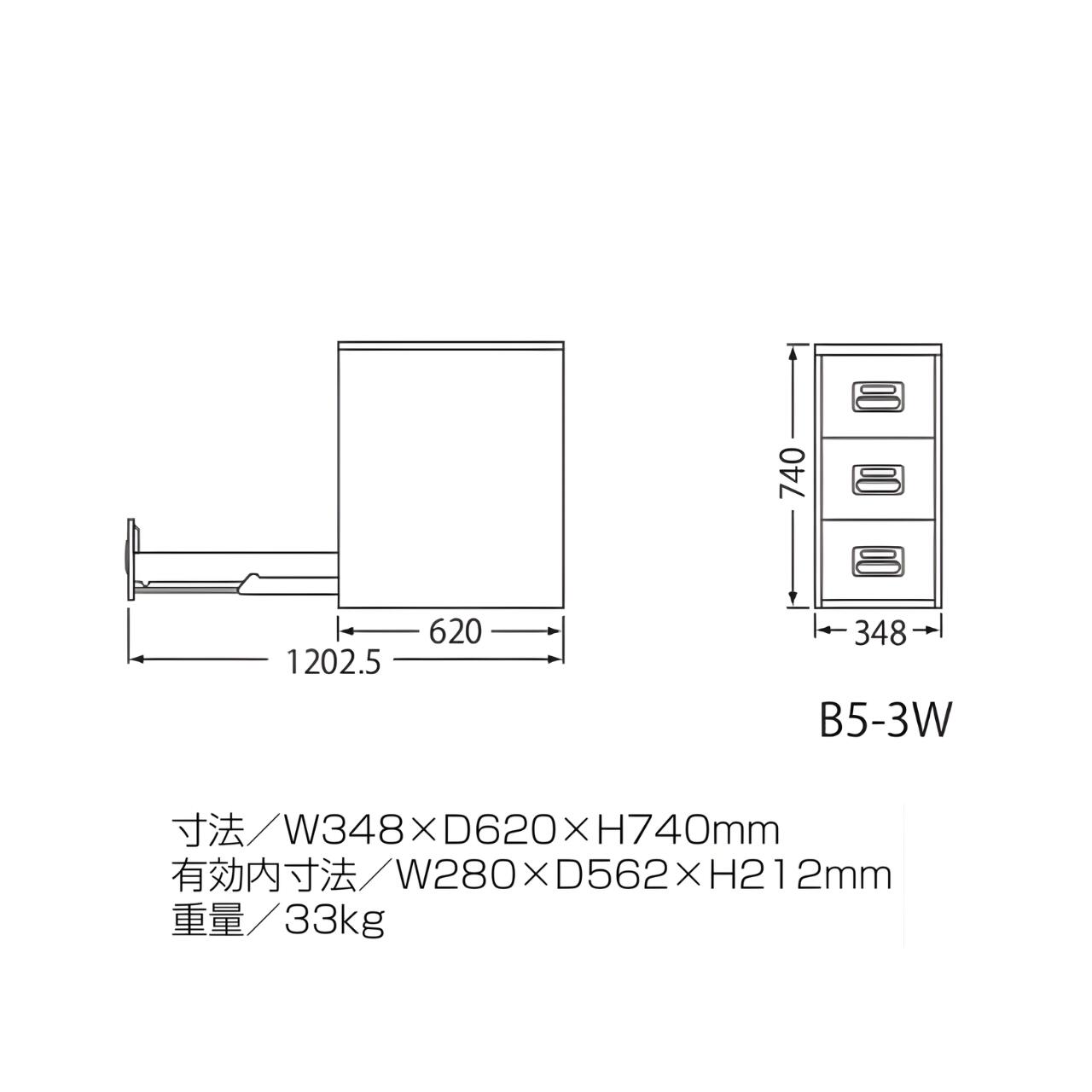 ファイリングキャビネット B5サイズ引出し 3段 ホワイト色 W348×D620×H740mm B5-3W