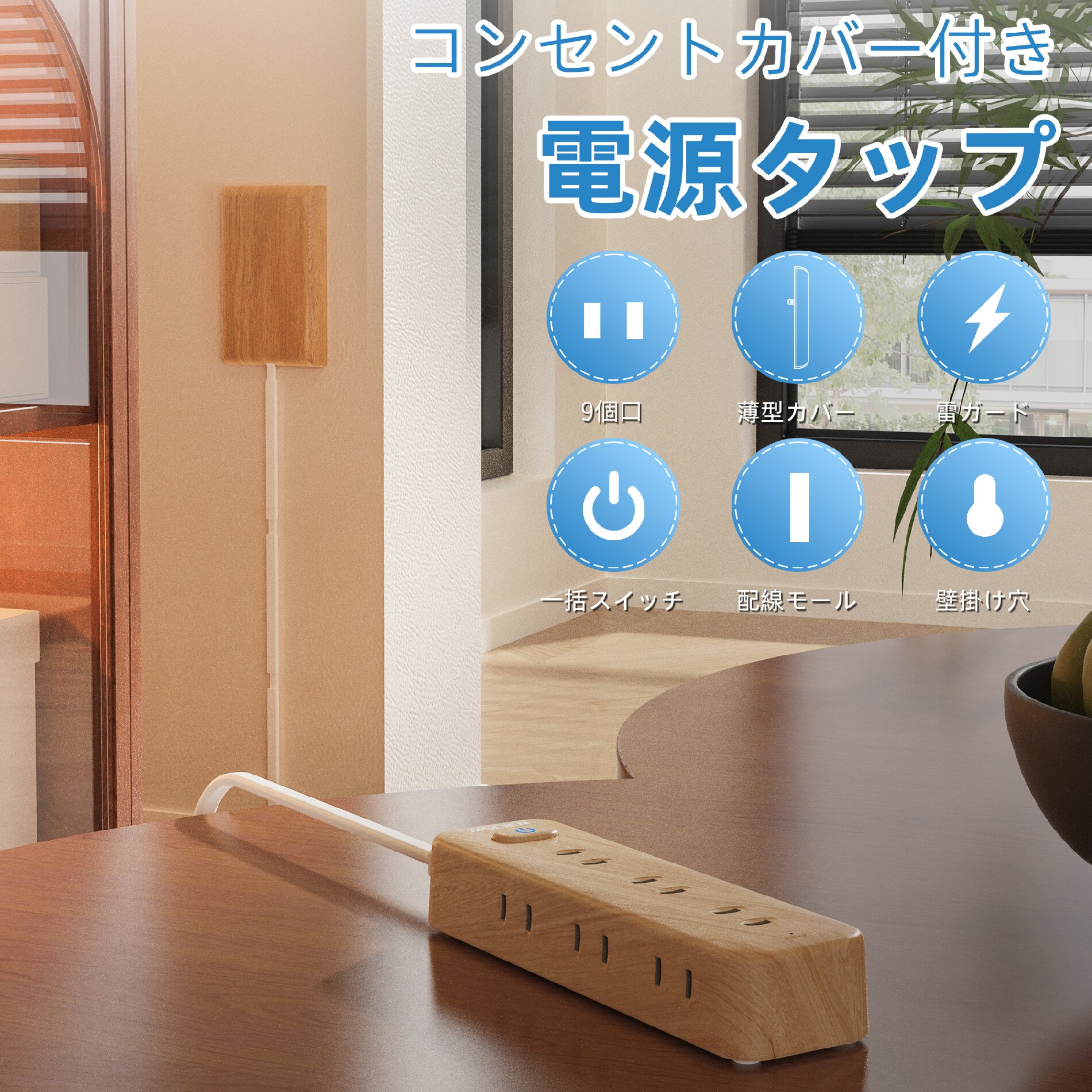 \ブラックフライデー限定!全店最大2,000円OFFクーポン配布中!/MSCIEN コンセント カバー 延長コード 2m 電源コード コンセントガード ほこりシャッター 壁に溶け込む コンセント タップ 雷ガード 9個口 OAタップ安全 ベビーガード ベージュウッド インテリア