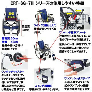 車椅子 軽量 コンパクト CRT-SG-7Hi 座面高50cm 座幅42cm 自走式 折りたたみ ノーパンク ワンハンドブレーキ 種類 ミキ 北海道 沖縄 各離島 送料別途必要