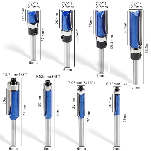 トリマービット ルータービット 径6mm 8本 面取りビット ベアリング トリマー ビット ストレート ほぞ 溝ほり 木工