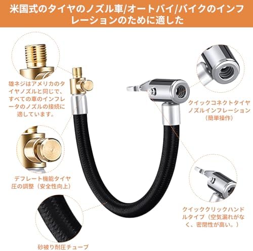 高品質の素材で作られたエアーホースです。ラバーゴムと黄銅を使用し、滑り止めや耐久性、柔軟性に優れています。長時間の使用にも耐えられます。簡単な操作で空気漏れもありません。優れた設計で、銅製カップリングと耐圧砂入りアウターホース、金属製インフレータブルコレットが組み合わさっています。高耐圧で安全性も高く、親指押し操作で簡単に使用できます。防爆、防錆、耐圧性に優れ、取り付けも簡単です。車やバイク、自転車のタイヤに使用でき、幅広く適用されます。アメリカのタイヤノズルにも対応し、使いやすさと信頼性を提供します。商品仕様は、ホースの長さ200mm、耐圧圧力300PSI、空気圧流量50L/minです。バイクや車のバルブ延長やエアホース延長に最適です。ディフレータブル機能も搭載しています。高品質の素材で作られたエアーホースです。ラバーゴムと黄銅を使用し、滑り止めや耐久性、柔軟性に優れています。長時間の使用にも耐えられます。簡単な操作で空気漏れもありません。優れた設計で、銅製カップリングと耐圧砂入りアウターホース、金属製インフレータブルコレットが組み合わさっています。高耐圧で安全性も高く、親指押し操作で簡単に使用できます。防爆、防錆、耐圧性に優れ、取り付けも簡単です。車やバイク、自転車のタイヤに使用でき、幅広く適用されます。アメリカのタイヤノズルにも対応し、使いやすさと信頼性を提供します。商品仕様は、ホースの長さ200mm、耐圧圧力300PSI、空気圧流量50L/minです。バイクや車のバルブ延長やエアホース延長に最適です。ディフレータブル機能も搭載しています。