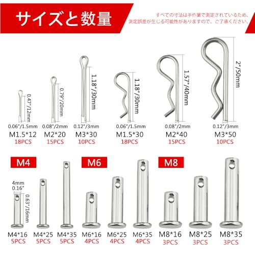 122個 クレビスピン コッターピン Rピン 割りピンセット 304ステンレス鋼 9サイズ36本 Rピンと割り 3サイズ各43本
