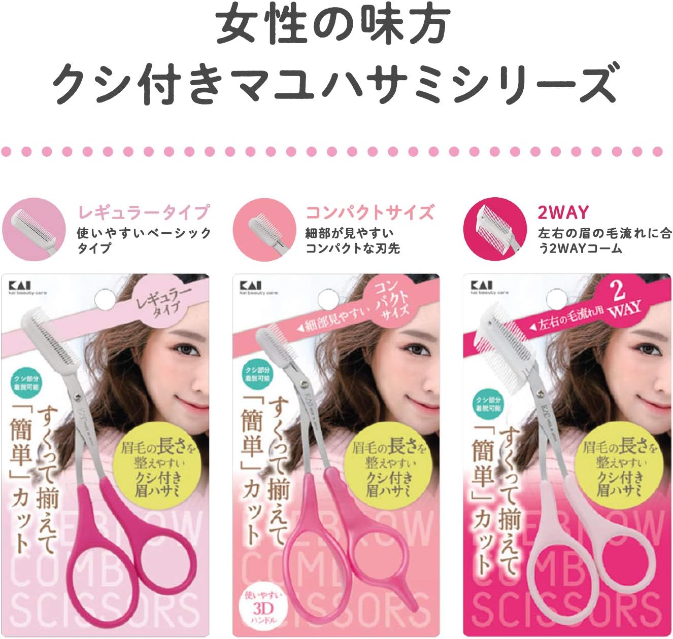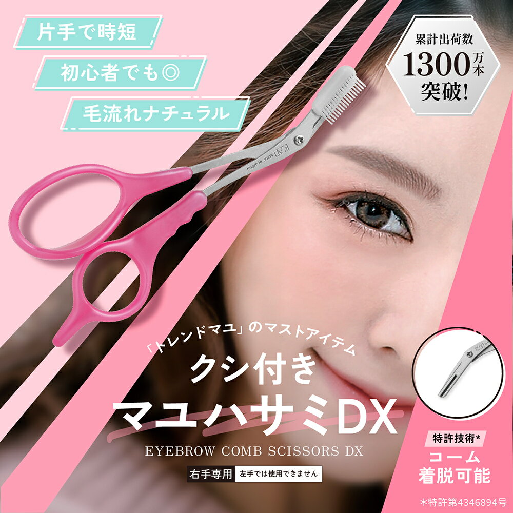【即納】【365日毎日出荷】貝印 眉毛ハサミ DX 細部みやすい コンパクトサイズ 右手専用 くし付き つけはずし可 レディース ピンク 日本製 KQ3157