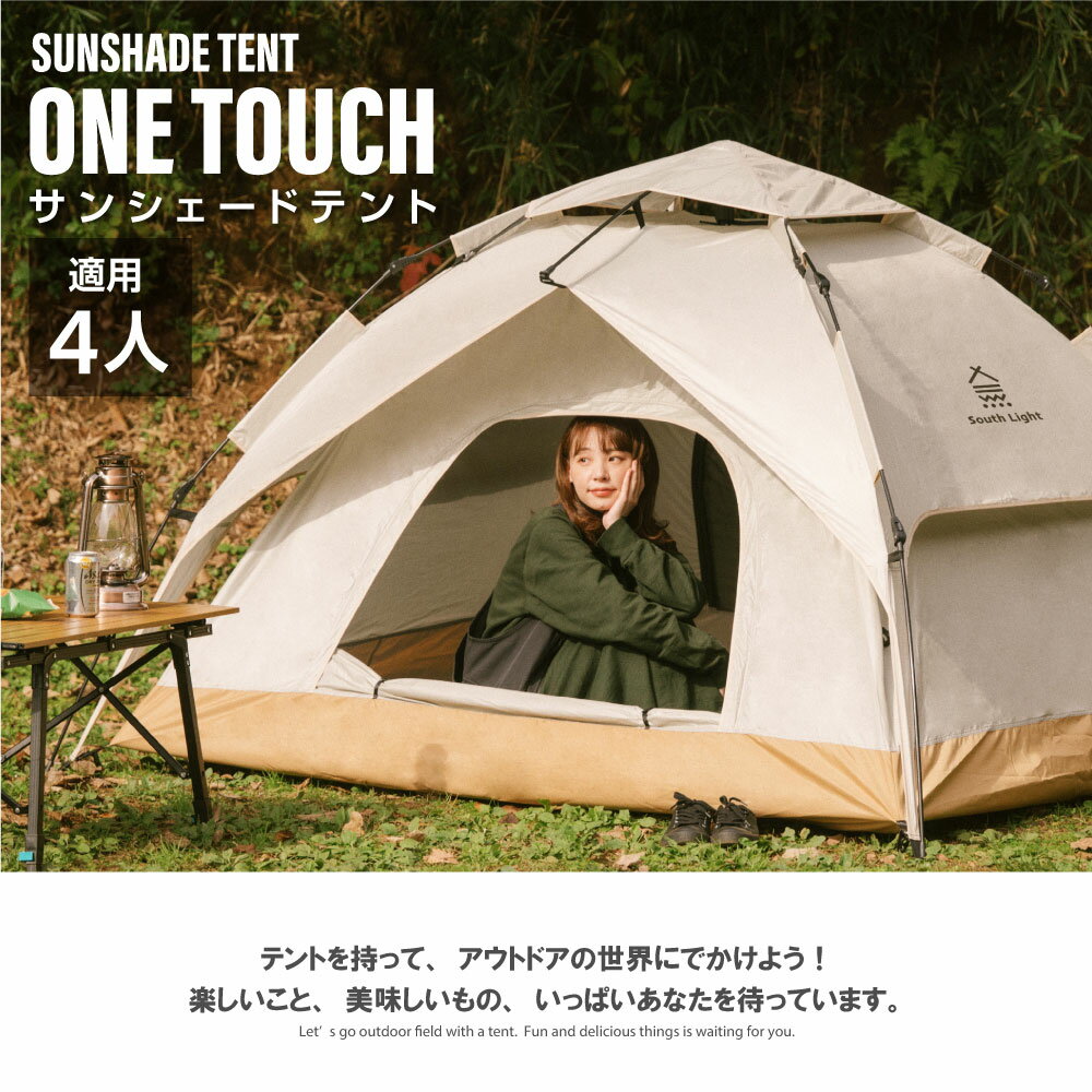 【45%OFFクーポン配布中】テント ワンタッチテント SouthLight アウトドア 3人 4人用 三人用 四人用 サンシェード フルクローズ キャンプ キャンピングテント ドームテント ビーチテント 高耐水 3色 収納バック付き 2ドア 軽量 通気 防災 緊急 d-00035
