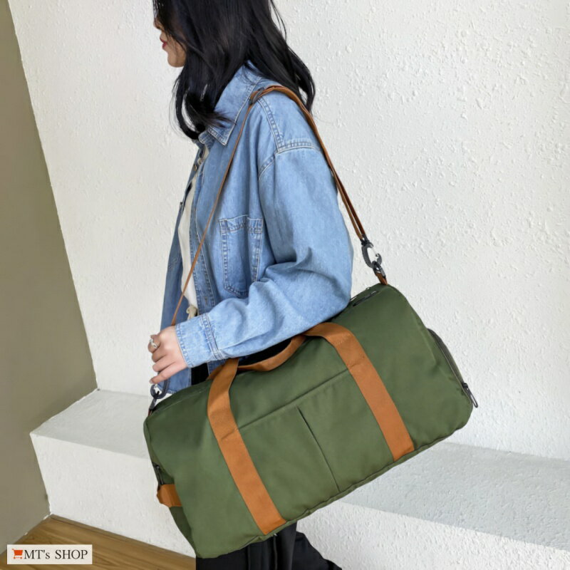 商品情報 商品の説明 2色のカラーリングが特徴のカジュアルなデザインのボストンバッグ、トラベルバッグです。たっぷり入る大容量仕様でポケットが多く、収納性が高いデザインでスポーツや旅行にも大活躍です。スーツケースに固定できるキャリーオンバッグとしての機能も搭載されております。靴専用の収納スペースや、濡れたお風呂用品や折り畳み傘の収納に便利な防水ポケットなど、ジムでの運動後の靴や汚れ物を持ち帰る際に便利です。 主な仕様 【メイン素材】: 表面生地:オックスフォード(防水) / 裏面生地:ポリエステル【サイズ】: 横幅 45cm 、 高さ 24cm 、厚み 22cm 、 手提げ 17cm 、背面通し穴の幅:18cm 、ショルダーベルト(調整可能): 最長105cm【重量】: 410g【ポケット数】:外側:防水ポケット 上面(x1)、靴収納ポケット 側面(x1)、オープンポケット 前面(x1)、 ファスナーポケット 側面(x1)【背面】:スーツケース持ち手固定用ベルト※「 MT's SHOP 」は 商標登録 第6122480号 により特許庁を通じ 商標権(第35類)を取得しております。2色のカラーリングが特徴のカジュアルなデザインのボストンバッグ、トラベルバッグです。たっぷり入る大容量仕様でポケットが多く、収納性が高いデザインでスポーツや旅行にも大活躍です。スーツケースに固定できるキャリーオンバッグとしての機能も搭載されております。折り畳んで持ち運びも可能です。しっかりとしたオックスフォード生地を採用しており、傷がつきにくく、また防水性の高い生地ですので少々雨に濡れても平気です。靴専用の収納スペースや、濡れたお風呂用品や折り畳み傘の収納に便利な防水ポケットなど、ジムでの運動後の靴や汚れ物を持ち帰る際に便利です。長さ調節が可能なショルダーベルトが付属しているので、手提げ、斜め掛け、肩掛けもできる3WAY仕様です。ショルダーベルトは取り外し可能です。 【上部】メインポケットは大きく開くファスナー式になっており、取り出しやすく、また、中身が飛び出すのを防止できます。防水ファスナーポケットが一つあり、タオル、折りたたみ傘など濡れたものを収納するのに便利です。【前面】オープンポケットが1つあり、スマートフォン、定期券、財布、鍵など、すぐに取り出したい小物を収納するのに便利です。【側面】片側にファスナーポケットが一つ、もう片側に靴収納用の専用ポケットが1つあり、ジム用シューズなどの持ち運びに便利です。また、片側に持ち手を1つ搭載しています。【メインポケット】メインポケットには15.6型ノートパソコン、A4雑誌サイズや1泊2泊の着替えも十分収納可能です。【スーツケース通し穴】背面にスーツケースの持ち手に差し込んでバッグを固定するためのベルトがあります。【メイン素材】: 表面生地:オックスフォード(防水) / 裏面生地:ポリエステル【サイズ】: 横幅 45cm 、 高さ 24cm 、厚み 22cm 、 手提げ 17cm 、背面通し穴の幅:18cm 、ショルダーベルト(調整可能): 最長105cm【重量】: 410g【ポケット数】:外側:防水ポケット 上面(x1)、靴収納ポケット 側面(x1)、オープンポケット 前面(x1)、 ファスナーポケット 側面(x1)【背面】:スーツケース持ち手固定用ベルト※「 MT's SHOP 」は 商標登録 第6122480号 により特許庁を通じ 商標権(第35類)を取得しております。ブラック グリーン カーキ ネイビー レッド ▲楽天市場のポイントアップキャンペーン▲