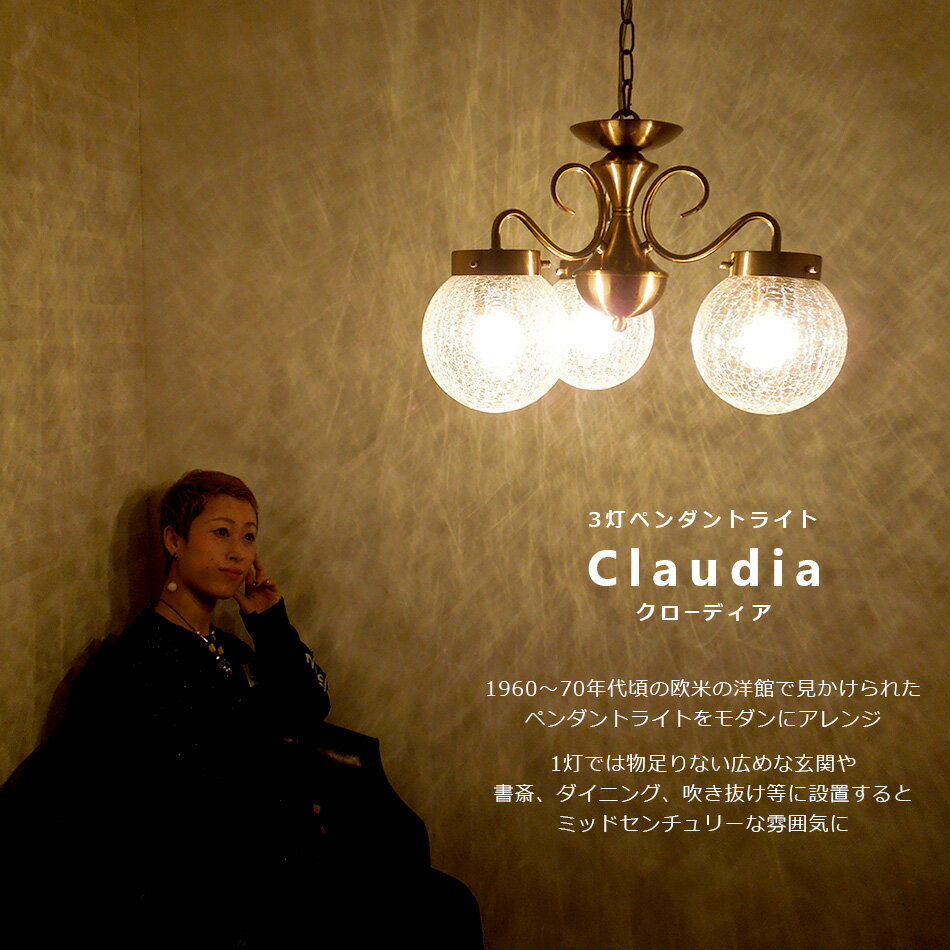 【楽天スーパーSALE限定クーポン配布中】ペンダントライト 3灯 LED対応 ガラス 吊り下げ シェード おしゃれ レトロ アンティーク リプロダクト ジェネリック家電 クローディア OV-045-3 新生活