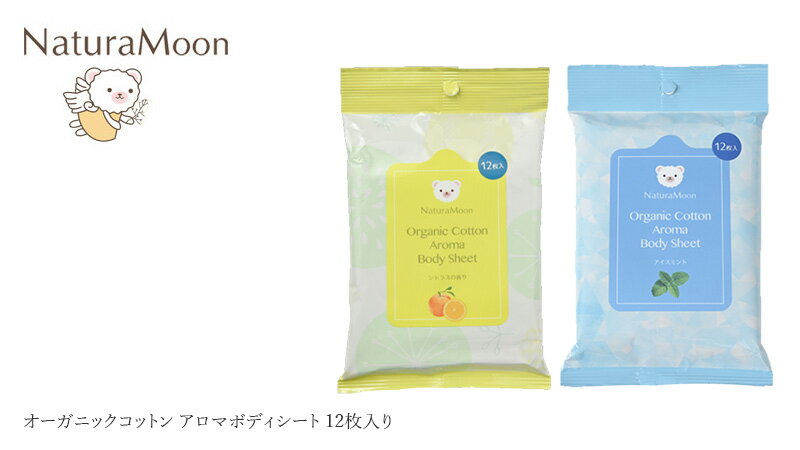 ボディシート ナチュラムーン オーガニックコットン アロマボディシート 12枚入り シトラス アイスミント 厚手 大判 ボディ用ウェットシート 購入金額別特典あり オーガニック 正規品 天然由来成分100% 界面活性剤・鉱物油・合成香料・防腐剤不使用 汗拭き 天然精油