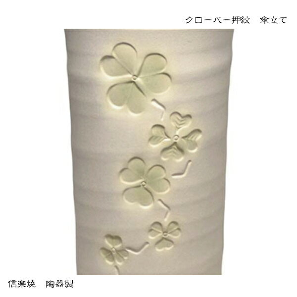 陶器傘立て【クローバー押紋 傘立て】白 ホワイト 陶器 おしゃれ 信楽焼 【日本製】