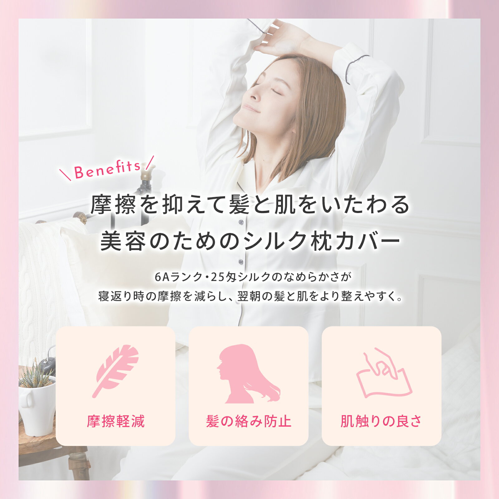 メーカー希望小売価格はメーカーサイトに基づいて掲載していますメーカー希望小売価格はメーカーサイトに基づいて掲載していますメーカー希望小売価格はメーカーサイトに基づいて掲載していますメーカー希望小売価格はメーカーサイトに基づいて掲載していますメーカー希望小売価格はメーカーサイトに基づいて掲載しています【翌朝、違いを実感!髪と肌に潤いを】髪とお肌のケアは寝ている間にこそ差がつきます。THE KINUのシルク枕カバーで、翌朝のしっとり感をぜひ味わってみてください。【累計販売数120,000枚突破&楽天ランキング103冠達成】レビュー総数4,600件超え(※2024年11月時点)の圧倒的実績!信頼され続けるシルク枕カバーです。【こんなお悩みありませんか?】・髪にツヤがなく乾燥やパサつきが気になる → シルクの保湿力・吸湿性が潤いをキープ。 ・毎朝の寝ぐせ直しが面倒! → 摩擦を抑え、寝ぐせをつきにくくサポート。 ・自分に合うヘアケアがわからない → シルク枕カバーをプラスしてヘアダメージを軽減。 ・寝具の摩擦でお肌が荒れる… → 人肌に近いタンパク質繊維で肌に優しい。【シルク枕カバーにおまかせください!】寝返り回数は一晩20回前後とも言われ、摩擦ダメージが髪や肌に蓄積。THE KINUなら、寝ている間にしっかり保護し、翌朝のツヤ感をサポートします。【美のプロたちがオススメ!】美髪・美肌の専門家も太鼓判を押す信頼の品質です。「眠りの時間が美活時間に」美肌セラピスト 川並 まどかさん監修睡眠時のお肌や髪は乾燥や摩擦ダメージを受けやすい無防備な状態です。このような負担を最小限に抑え、美肌&美髪を目指す方におすすめのTHE KINUのシルク枕カバー。手持ちの寝具にも馴染むシンプルなデザイン。艶やかな光沢感ある高級シルクはお肌や髪との親和性が高く吸湿性も高い素材なので、1年中心地よくお使いいただけます。眠りの時間が優雅な美活時間になるTHE KINUのシルク枕カバーをぜひお試しください。「手触りしっとり感が全然違います」トップスタイリスト 高木 綾さん監修私の髪はブリーチによりハイダメージを受けているため、少しの摩擦で髪の毛がちぎれたりします。寝ている間は髪の毛に頭の重さが加わるためより一層負荷がかかります。シルクの枕カバーは使用した事がなかったのですが、朝の髪のまとまり方が違い手触りもしっとりして、おりおさまりが全然違いました。シルクの上質な質感で、柔らかくストレスなく眠れました。見た目も高級感があります。肌や髪の毛に1番近い、たんぱく質でシルクは出来ているためかなり優しい素材なんだなと感じました。「眠っている間に髪やお肌の悩みを解決!」AEAJ美肌マイスター 神所 幸枝さん監修美しい肌、髪を維持する為には、健康な身体と精神が保たれていることが重要です。 身体は質の良い睡眠を取る事で、健康な状態を維持します。THE KINUのシルク枕カバーは、枕に装着するだけで眠っている間に髪やお肌の悩みを解決してくれます。シルクは人の肌に近いタンパク質でできているため柔らかく、その上、保湿力が高いので髪と素肌に潤いを与える効果があります。更に、通気性と吸収性にも優れ暑い夏も蒸れにくく、1年中快適な睡眠をサポート。保湿力に優れたシルク枕の使い心地の良さに感動していただけます!普段のお手入れにプラスして、睡眠環境も整えて、健やかな髪、肌へと導きましょう。「髪質改善につながります」トータルビューティーアドバイザー 伊藤 美緒さん監修美髪にとって、乾燥、摩擦は重要ですが、ナイトキャップが苦手な方におすすめなのは、シルク枕カバーです。カバーを締めかえるだけで髪の乾燥、傷みの軽減、髪質改善につながります。シルクは綿より保湿感を持ってるため直接当たるお顔にとっても刺激の軽減になります!私も実際に使ってみて、肌に塗った美容液が朝までしっかり浸透していることも実感でき、髪はもちろん肌も調子が良くなったことを実感しています。【眠りの時間が美活時間に】睡眠中の摩擦や乾燥を防ぎ、効果的な美活を叶えます。【シルクのちから】・ヒトに近いやさしい素材 → 保湿性・吸湿性が髪と素肌に潤いを与えます。 ・触れればわかる、シルクのやわらかさ → 一度触れたらやみつきの贅沢な手触り。 ・快適な睡眠環境を整えたい人にもおすすめ → オールシーズン快適。夏も蒸れにくく、冬はひやっとせず快適。【6つのこだわりポイント】・Point 01 最高級6Aランクシルク → 本場・中国産の6Aランクを証明付きで使用。 ・Point 02 程よい厚みの19匁シルク → 耐久性・品質・価格のバランスが絶妙。 ・Point 03 装着カンタンなかぶせ式 → 金具不使用で肌に優しく、簡単に取り付け可能。 ・Point 04 すべりにくい片面シルク → 裏面は再生繊維で滑りを軽減。 ・Point 05 耐久性を高めるパイピング → ふちに施されたパイピングが布地を保護。 ・Point 06 10色のカラーバリエーション → インテリアに合う多彩な色展開。【シルク枕カバ