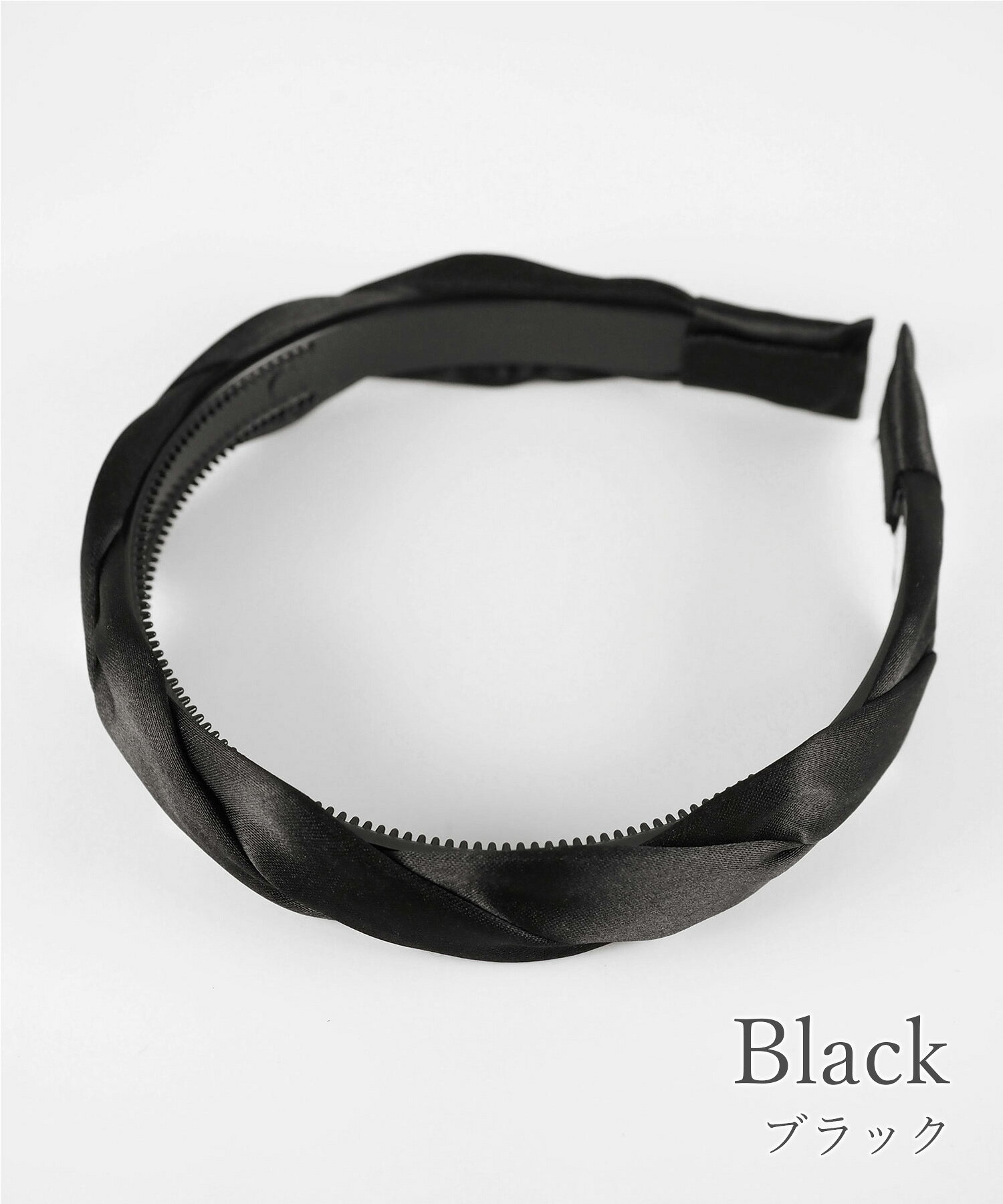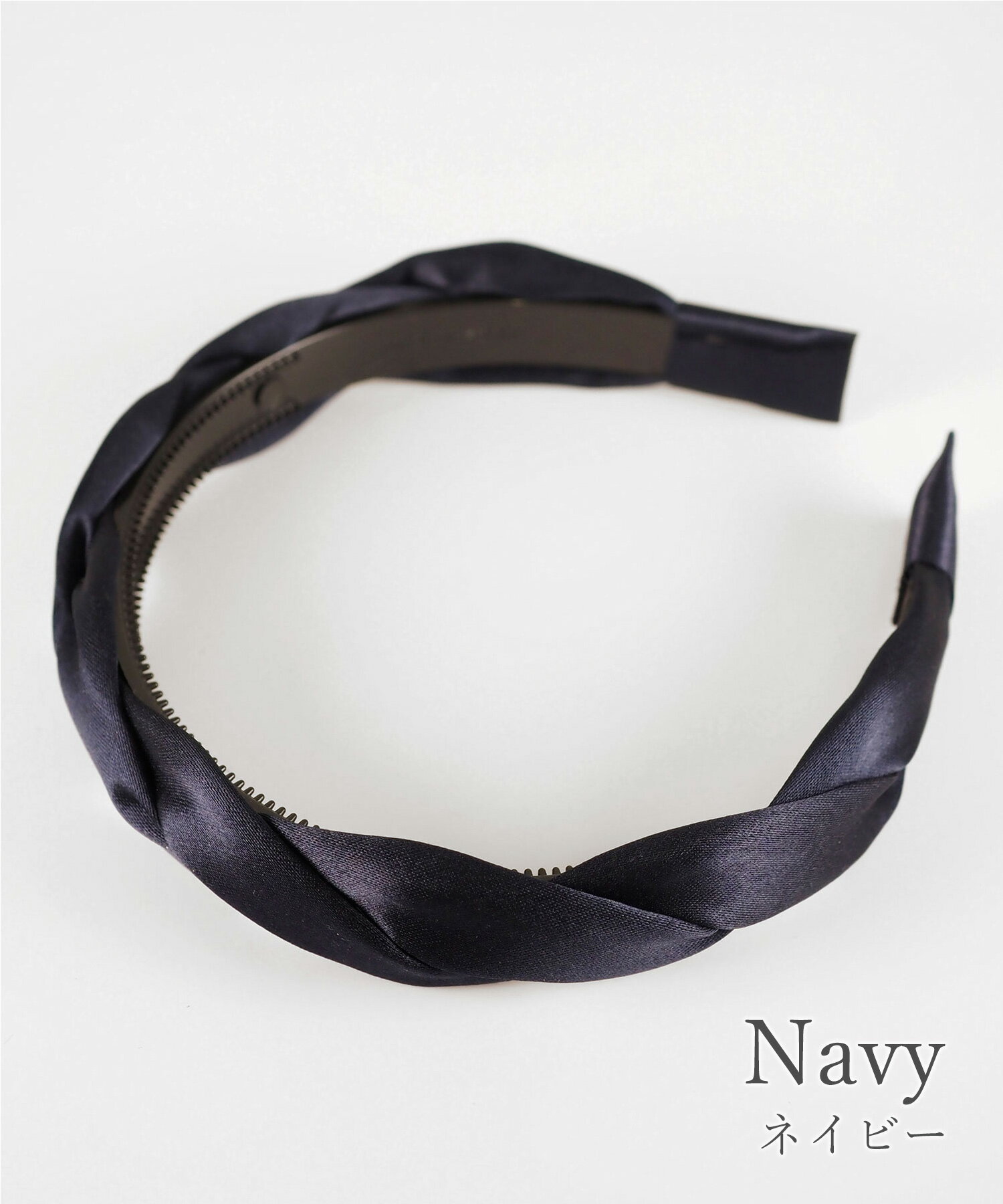 カチューシャ ヘアバンド ヘッドバンド ヘッドドレス サテン ネジリカチューシャ シンプル 無地 ネイビー ブラック 紺 黒 クリスマスプレゼント