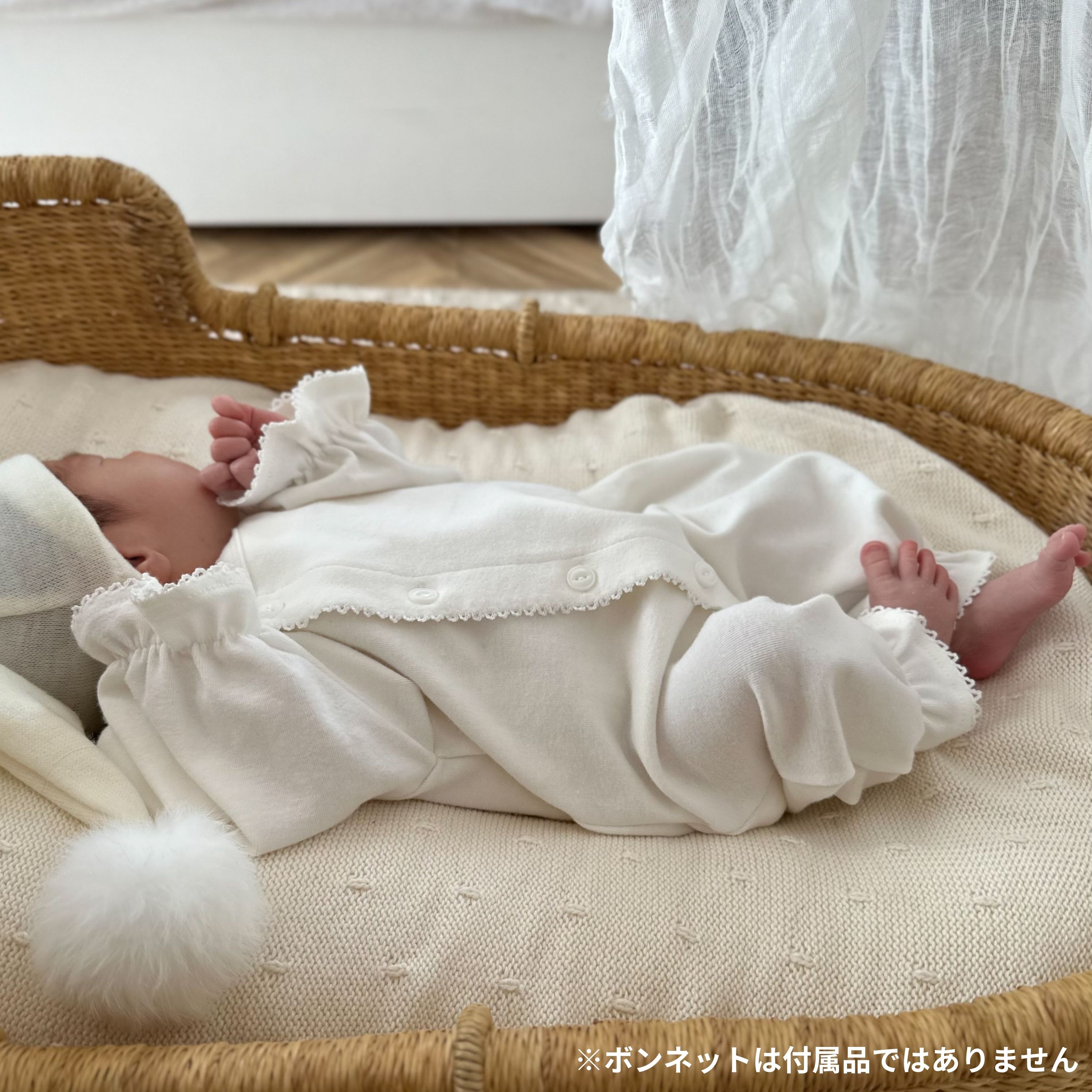 セレモニードレス【LINE200円OFFクーポン】monbebe 50 60 ピコレース 退院着 新生児 韓国子供服 ベビー服 男の子 女の子 出産祝い プレゼント ギフト 綿100 春 秋 冬 結婚式 お宮参り ロンパース ベビードレス 撮影 ホワイト コットン レース