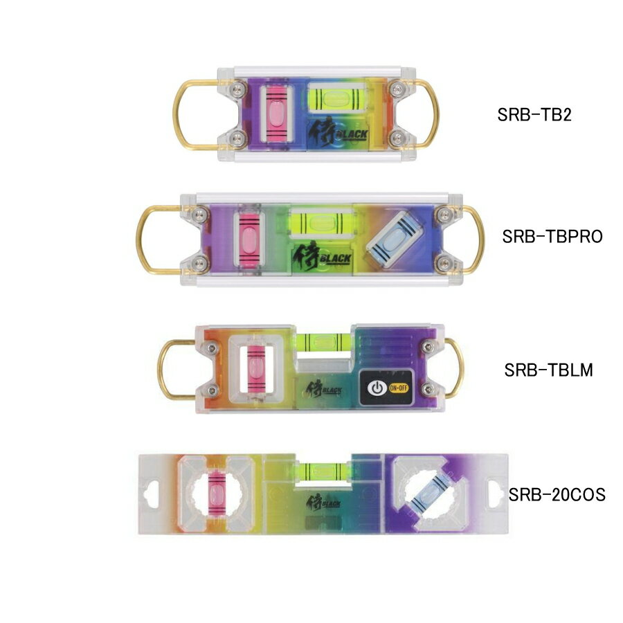 侍BLACK × EBISU 水平器 レベル レインボーカラー 鳶レベル SRB-TB2 / 鳶レベルプロ SRB-TBPRO / 鳶ライトレベルミニ SRB-TBLM / コスミックレベル SRB-TBLCOS エビス 水平器